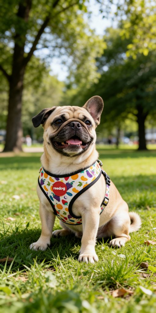 Designový postroj pro psa, model s motivem ovoce z lehkého a prodyšného materiálů a logem Reedog na hrudní části postroje. Pohodlný střih a provedení, netrhá srst, netlačí a nedře vašeho mazlíčka, je vhodnou variantou pro pejsky kteří táhnout, aby nebyla zatěžována krční páteř. Součástí je kroužek pro uchycení vodítka.