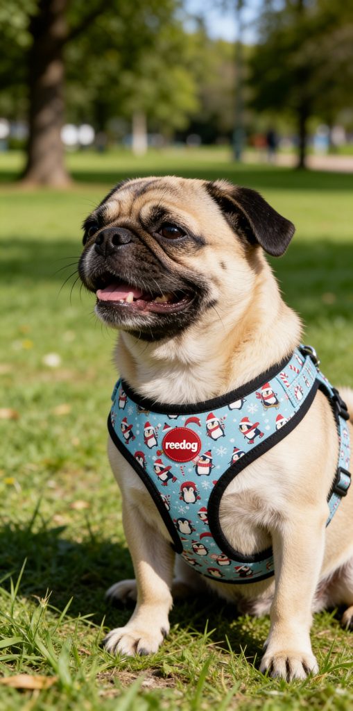 Designový postroj pro psa, model s motivem tučňáků z lehkého a prodyšného materiálů a logem Reedog na hrudní části postroje. Pohodlný střih a provedení, netrhá srst, netlačí a nedře vašeho mazlíčka, je vhodnou variantou pro pejsky kteří táhnout, aby nebyla zatěžována krční páteř. Součástí je kroužek pro uchycení vodítka.